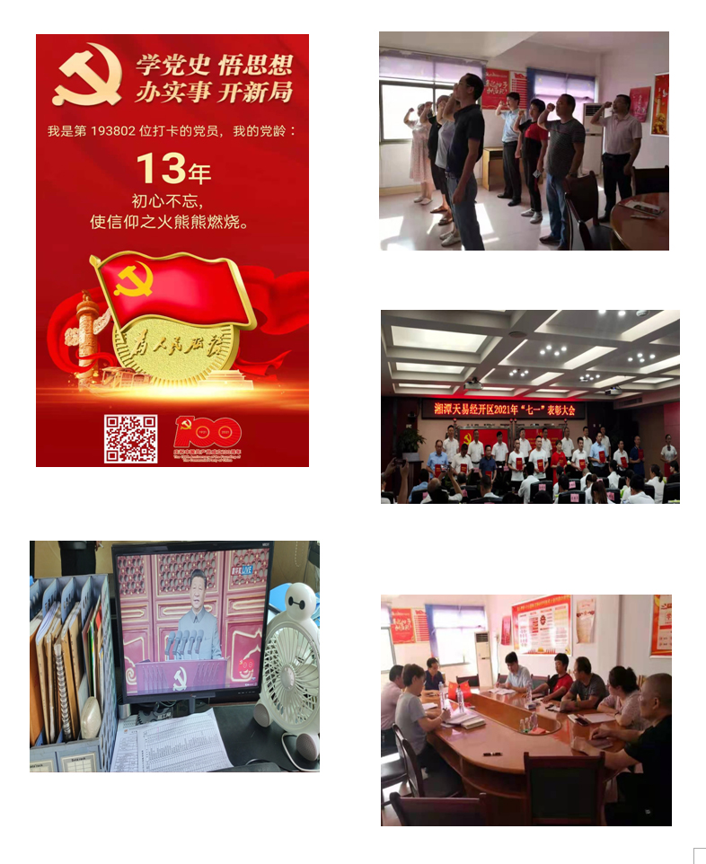 慶祝中國共產(chǎn)黨成立100周年大會于7月1日上午8時(shí)在北京天安門廣場隆重舉行。湘潭市冶金設(shè)備公司黨支部組織全體黨員干部、入黨積極分子齊聚觀看慶祝大會直播。大會前,全體人員肅立向黨旗鄭重宣誓,奮發(fā)有為,不忘初心。在建黨百年之際,我們將按照“一個(gè)引領(lǐng),兩個(gè)堅(jiān)定”的工作思路要求,知重負(fù)重、攻堅(jiān)克難,努力為公司的發(fā)展再創(chuàng)佳績。