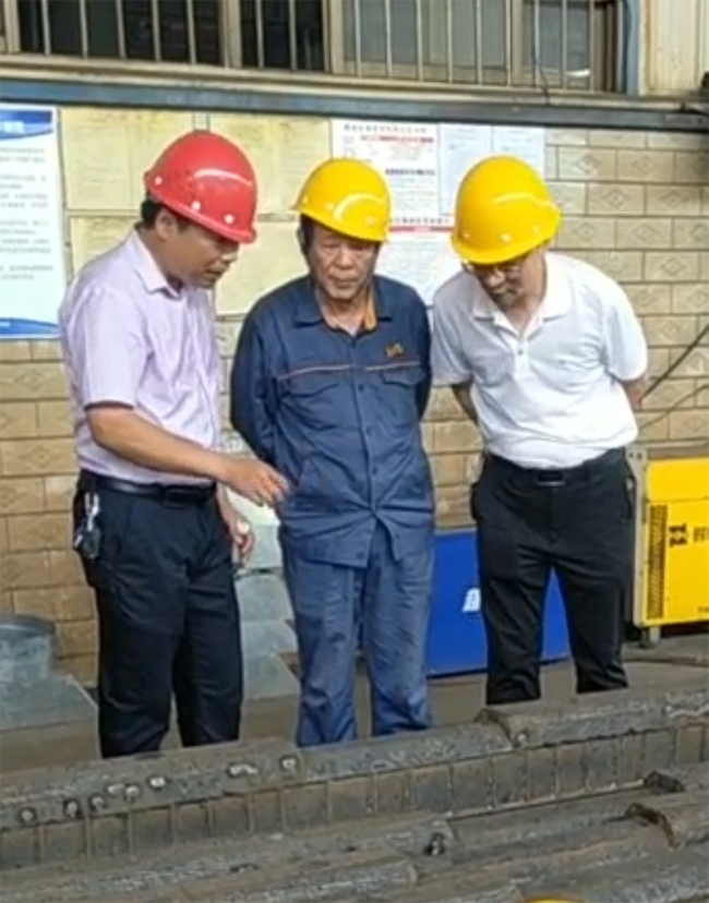 2021年7月15日,公司再次邀請(qǐng)建黨100周年“七一勛章”獲得者艾愛(ài)國(guó)來(lái)我公司,就埋弧燒焊的焊嘴角度,電流電壓的匹配、滾子的轉(zhuǎn)速等技術(shù)難題,對(duì)我公司青年技師進(jìn)行技術(shù)指導(dǎo),公司總經(jīng)理劉美林全程陪同。