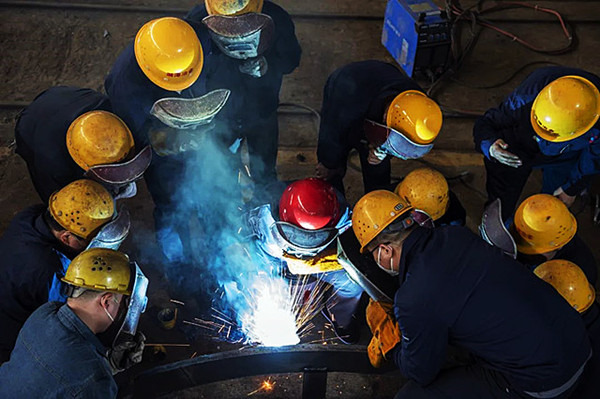 劉美林總經(jīng)理在專家指導(dǎo)過(guò)程中向焊工們強(qiáng)調(diào)焊縫外觀美的重要性,強(qiáng)調(diào)提升質(zhì)量勢(shì)在必行,勉勵(lì)焊工們學(xué)習(xí)一級(jí)焊接技師的工匠精神, 勇攻技術(shù)難關(guān),善于學(xué)習(xí)鉆研,與湘冶同進(jìn)步。