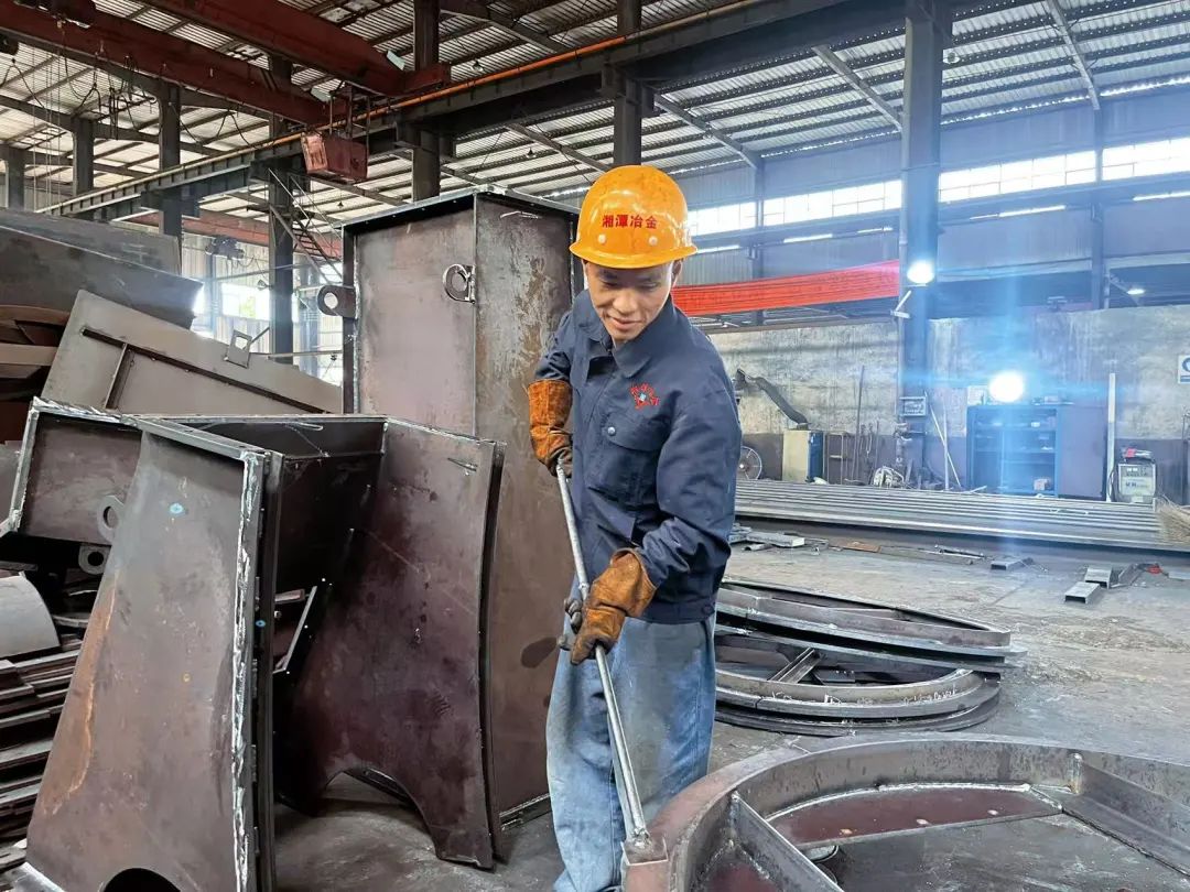 張躍雄曾獲湘潭縣技術能手稱號,是一位技藝精湛的鉚焊工。2015年,他曾在公司的筒體車間工作過一年多,積累了豐富的實踐經(jīng)驗。后來,他為了追求更廣闊的發(fā)展空間,選擇到外地闖蕩。在外闖蕩的十年里,他見識了外面世界的繁華與競爭,也經(jīng)歷了各種挑戰(zhàn)與困難。然而,他始終無法忘記湘冶這個讓他成長的地方。今年,他決定回歸家鄉(xiāng),尋求更穩(wěn)定的生活,于是聯(lián)系了當時的車間主任,表達了重返公司的意愿。公司破例吸收了他。重回班組后,他迅速適應了新的工作環(huán)境,憑借多面手的技能優(yōu)勢,不僅在焊接領域表現(xiàn)出色,還能在班組的其他工作中發(fā)揮重要作用。在越南項目中,張躍雄憑借其多面手的技能,解決了項目中的多個技術難題。他不僅完成了復雜的焊接任務,還通過優(yōu)化工藝流程,提高了生產效率。他的回歸為班組的發(fā)展注入了新的活力。他感慨地說:“外面的世界很精彩,但湘冶的溫暖和歸屬感,是任何地方都無法替代的。在這里,我找到了匠人精神的歸宿。”